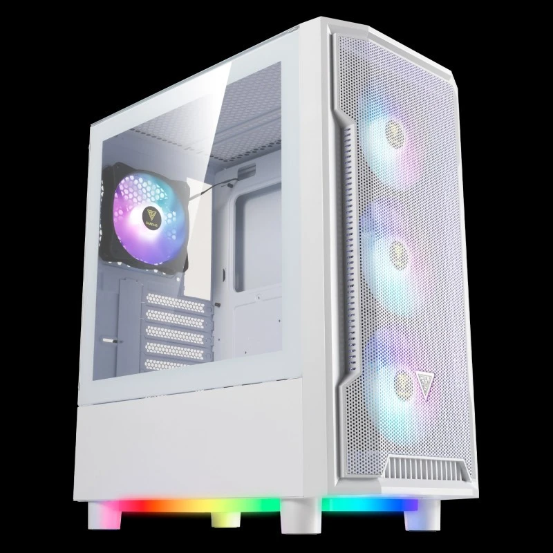 ATHENA M6 LITE WH is a mid-tower case with a unique lighting profile focused on optimizing airflow performance. The case features a panoramic mesh front panel, four built-in 120mm ARGB fans, and triple-sided ARGB light strips to leverage airflow performance and create ambient underglow lighting effects.
