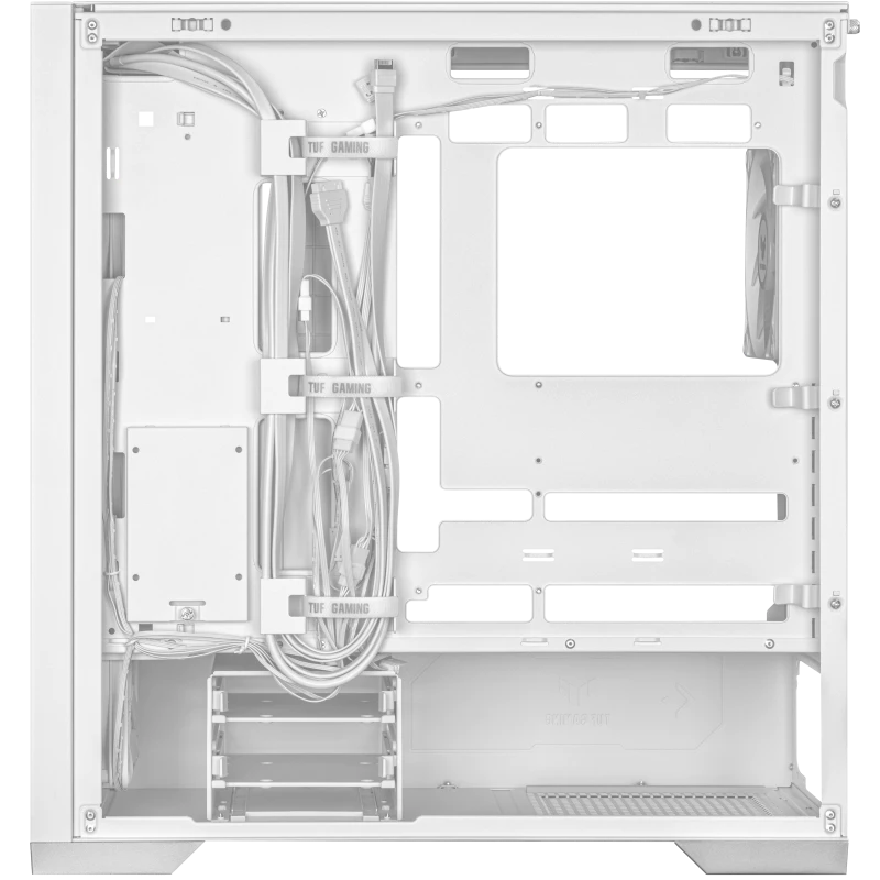 The TUF Gaming GT302 ARGB comes with a cable grommet bar featuring three large straps to let you neatly organize two sets of cables, and three cable clips on the side for tidy routing of the 8-pin CPU power cable