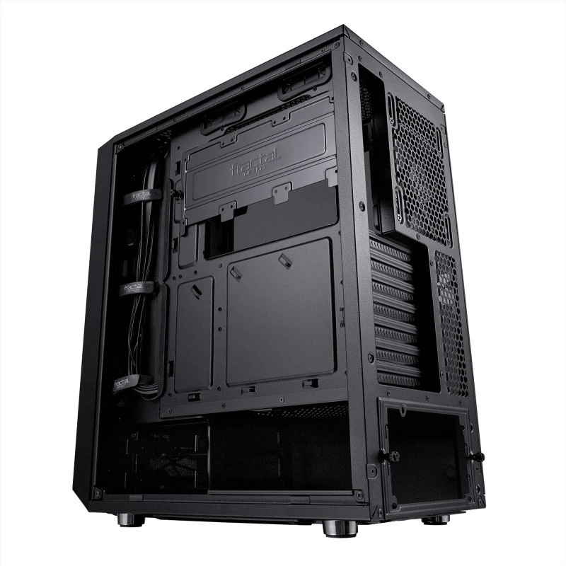 An open ATX layout with intelligent space utilization creates an unrestricted airflow path from the mesh front intakes directly through key components to exhaust, ensuring heat is never an issue. The Meshify C has a remarkably compact footprint with the high-end component support of a larger tower, and with seven fan mounts and multi-radiator liquid cooling capability, it has the cooling capacity to match.