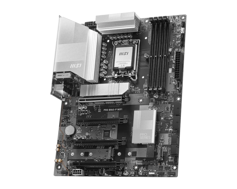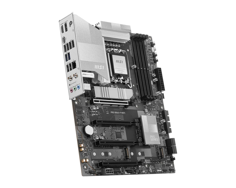 The MSI PRO B860-P motherboard offers robust ATX design with Intel B860 chipset for LGA 1851 processors, supporting up to 256GB DDR5 memory across 4 UDIMM slots, delivering high-speed multitasking and efficient performance. Featuring 4 PCIe x16 slots for flexible GPU and expansion options, 3 M.2 NVMe SSD slots for ultra-fast storage solutions. Integrated WiFi and Bluetooth provide reliable wireless connectivity. Perfect for professional-grade workstations and gaming setups requiring scalability and speed.