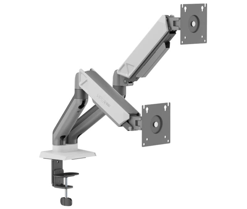 Maximize your workspace with the Sades Viper SA‑MS01 Dual Monitor Mount Arm in sleek white. Crafted from full aluminum, it holds two 32″ monitors (up to 9 kg each), features gas-spring height, tilt, swivel & rotation adjustments, dual mounting options (clamp/grommet), and integrated cable management. Strong, stylish, and perfect for gaming, productivity, and clean desk setups.
