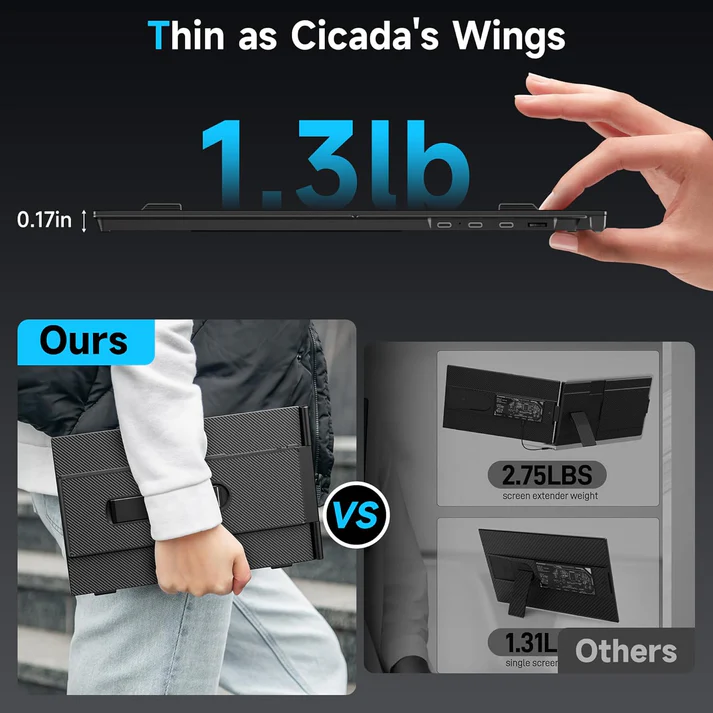 of 332 * 207 * 15.6MM, the thickness of the single screen is only 4.5MM, thin as a cicada's wings, the weight