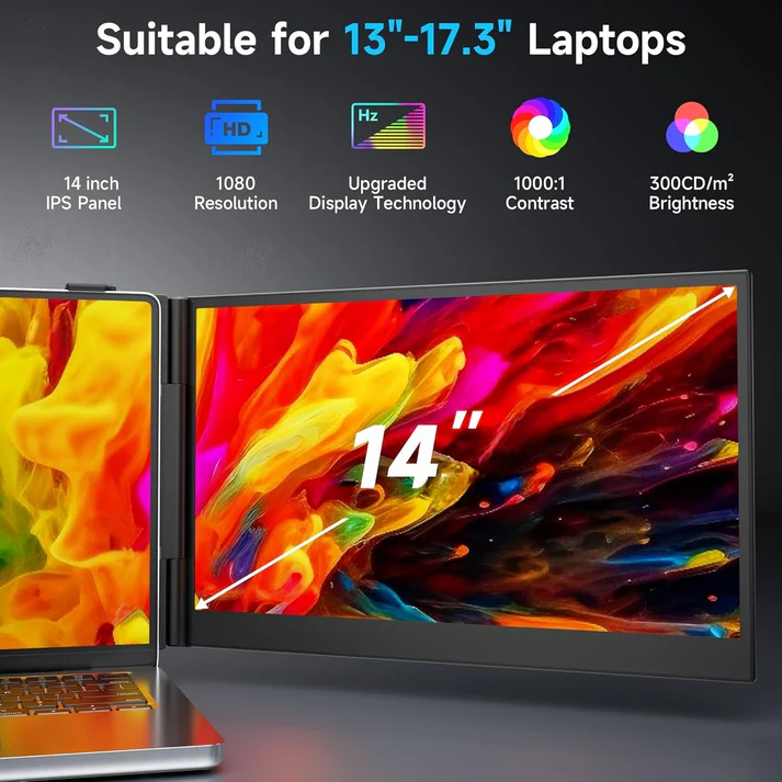 Brand: V2COM Model / MPN: S8 14″ Portable Monitor Screen Size: 14″ diagonal, Full HD (1920×1080), IPS panel Refresh Rate: 60 Hz Brightness: 300 nits Color Gamut & Contrast: ~72% NTSC, 1000:1 ratio Panel Thickness: Approx. 4.5 mm Weight: Approx. 600 g Connectivity: USB‑C with Dual‑Mode DP support, USB‑C power delivery Power Consumption: ≤ 8 W Features: Anti-glare coating, blue-light filter, built-in mono speaker Compatibility: Windows, macOS, Android, Linux, ChromeOS, gaming consoles (via adapters) Rotation: 180° screen angle, flip for portrait/landscape use Packaging Includes: Monitor, USB-C DP cable, Type-C charging cable, protective sleeve, user guide Use Cases: Dual-screen productivity, presentations, mobile editing, gaming, remote work Warranty: 1-year manufacturer warranty, UAE-based support |