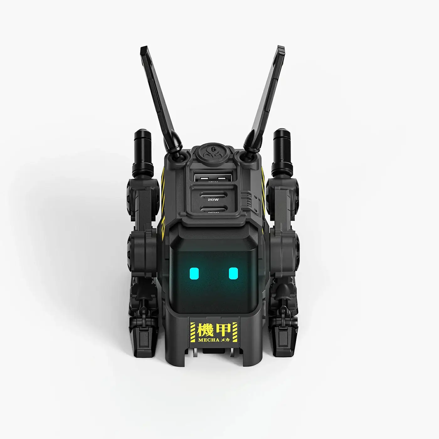 Even when it's not powering your devices, your Alpha65 is still the perfect little desktop companion. Once charging is completed, its mecha walker legs can be transformed from sitting to standing, and the power plug folds away into a concealed opening until it's needed again.