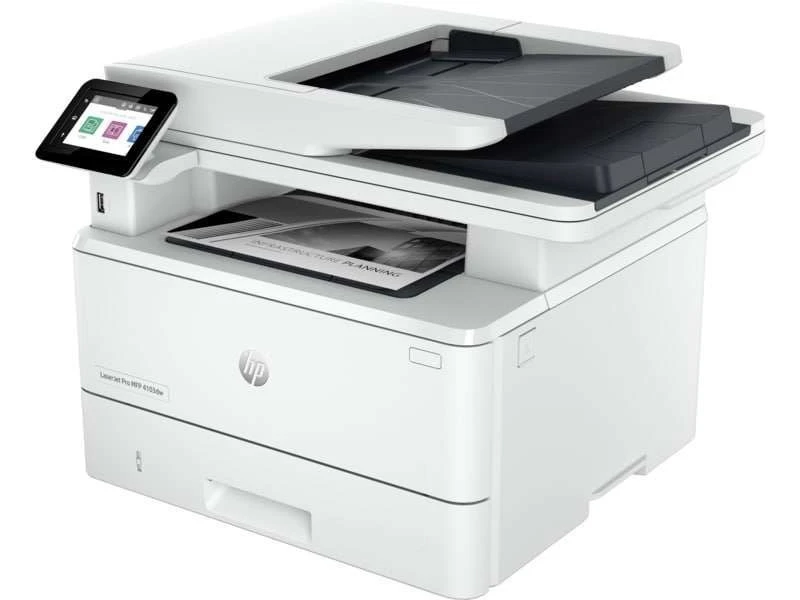 | Brand: HP Model: LaserJet Pro MFP 4103dw MPN: 2Z628F GTIN: 0196786054349 Printer Type: Monochrome Laser Functions: Print, Copy, Scan Print Speed: Up to 40 ppm (A4) Print Quality: 1200 x 1200 dpi (Black) Duplex Printing: Automatic Standard Processor: 1.2 GHz Memory: 512 MB First Page Out: As fast as 6.1 seconds Monthly Duty Cycle: Up to 80,000 pages Recommended Volume: 750 to 4,000 pages/month Display: 2.7" Color Touchscreen Connectivity: Hi-Speed USB 2.0, Gigabit Ethernet, Dual-Band Wi-Fi, Wi-Fi Direct Mobile Printing Support: Apple AirPrint, Mopria, HP Smart App, Wi-Fi Direct Printing Paper Handling: 250-sheet input tray, 100-sheet output bin Media Sizes Supported: A4, A5, A6, B5 (JIS), Custom Energy Efficiency: ENERGY STAR®, EPEAT® Silver Security Features: PIN Printing, HP Wolf Pro Security Dimensions: 420 x 390 x 323 mm Weight: Approx. 12.1 kg Color: White / Gray Use Case: Small to medium offices, corporate departments, secure document printing |