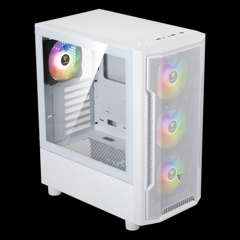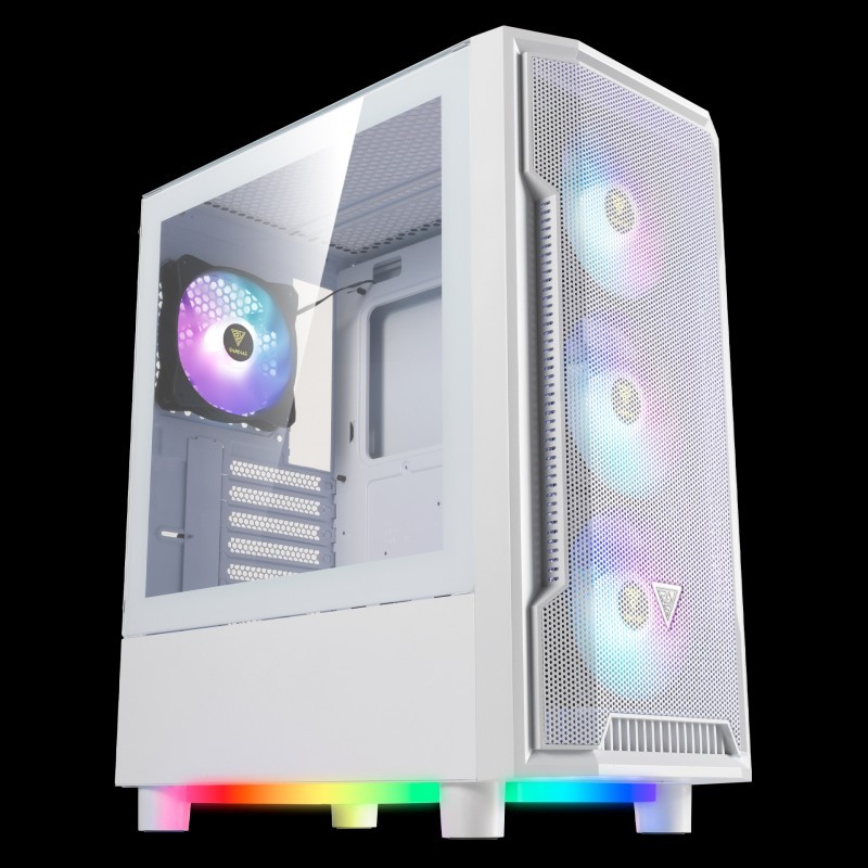 The ATHENA M6 LITE WH comes with a pillar-shaped mesh front panel with room for three 120mm RGB fans, implemented with all-around perforated ventilation. The case is designed to create an environment with unrestrictive airflow to meet next-generation cooling demands.