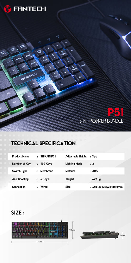 Fantech P51 Five in One Gaming Set, Headphone, Headset Stand, Keyboard, Mouse, Mousepad | P51 |