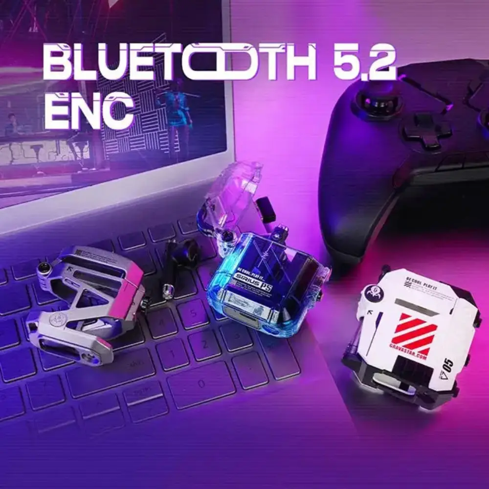 Get more with the GravaStar Sirius P5 TWS Earbuds 3-in-1 Combo Set, designed for ultimate versatility and futuristic style. Featuring True Wireless Stereo (TWS), low latency gaming mode, and up to 40 hours total battery life with fast USB-C charging, these earbuds deliver deep bass sound and clear vocals. Equipped with ENC microphones for crystal-clear calls, Bluetooth 5.2 seamless connectivity, and ergonomic lightweight fit for all-day comfort. The 3-in-1 Combo includes interchangeable shell designs to customize your look, making it perfect for gaming, music, travel, and everyday use.