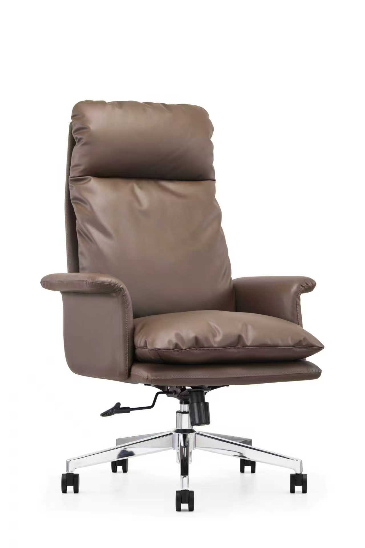 Generic Executive High-Back Leather Office Chair, High-quality PU leather, Adjustable Height & Recline, High Back with Integrated Headrest, Chrome-Plated Metal Base with 5 Casters, Brown | 90073A |