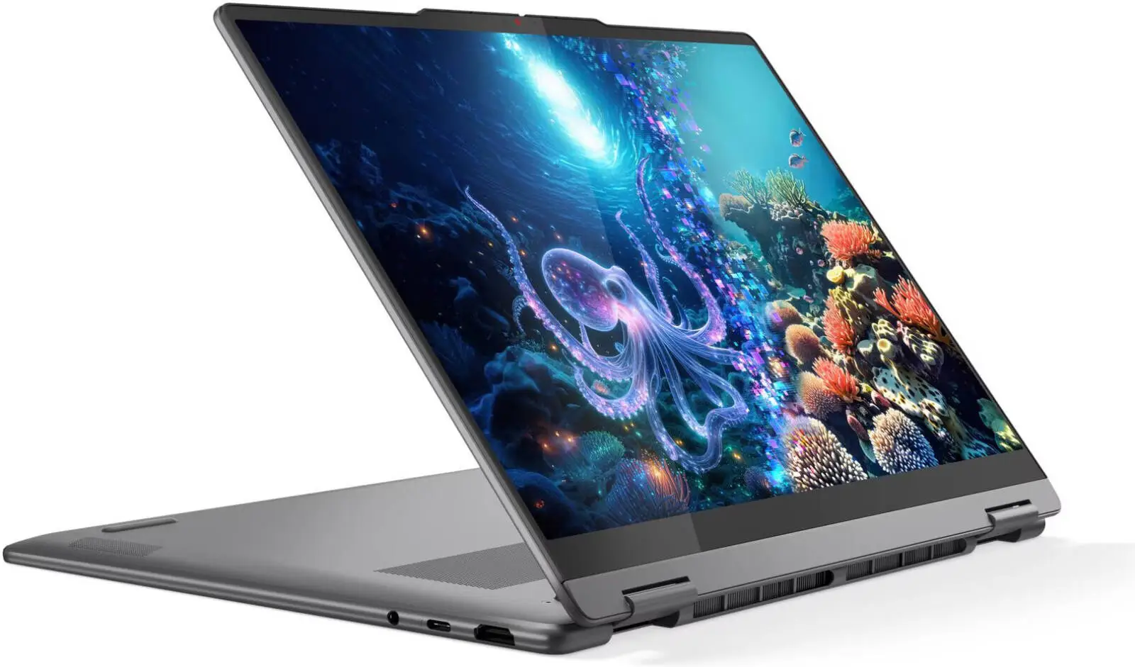 Enjoy stunning visuals on the 14-inch 2.8K (2880×1800) OLED touchscreen display with 120Hz refresh rate, offering deep contrast, vibrant colors, and ultra-smooth responsiveness. The 360° hinge design allows seamless switching between laptop, tablet, tent, and stand modes.